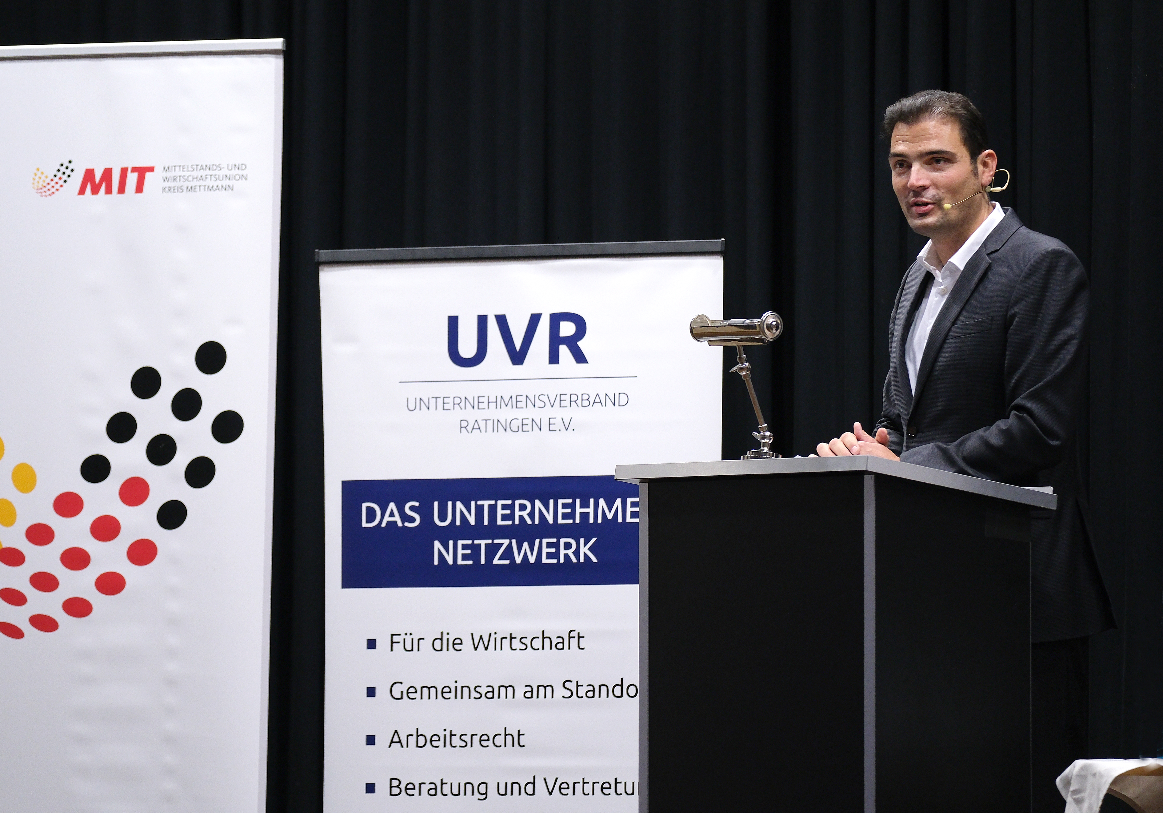 Rund 100 Gäste waren der gemeinsamen Einladung des Unternehmensverbands Ratingen (UVR) und der Mittelstands- und Wirtschaftsunion Ratingen (MIT) zur Vortragsveranstaltung mit dem Titel „Quo vadis, Deutschland? – Einblicke hinter die Kulissen der Bundespolitik“ gefolgt. Im Ballsaal des Ramada by Wyndham Düsseldorf Ratingen begrüßte UVR-Vorsitzender Olaf Tünkers die zahlreichen Gäste aus Wirtschaft, Politik und Verwaltung und erinnerte daran, dass die Veranstaltungsreihe bereits seit dreizehn Jahren hochkarätige Referenten zu aktuellen Themen nach Ratingen bringt.